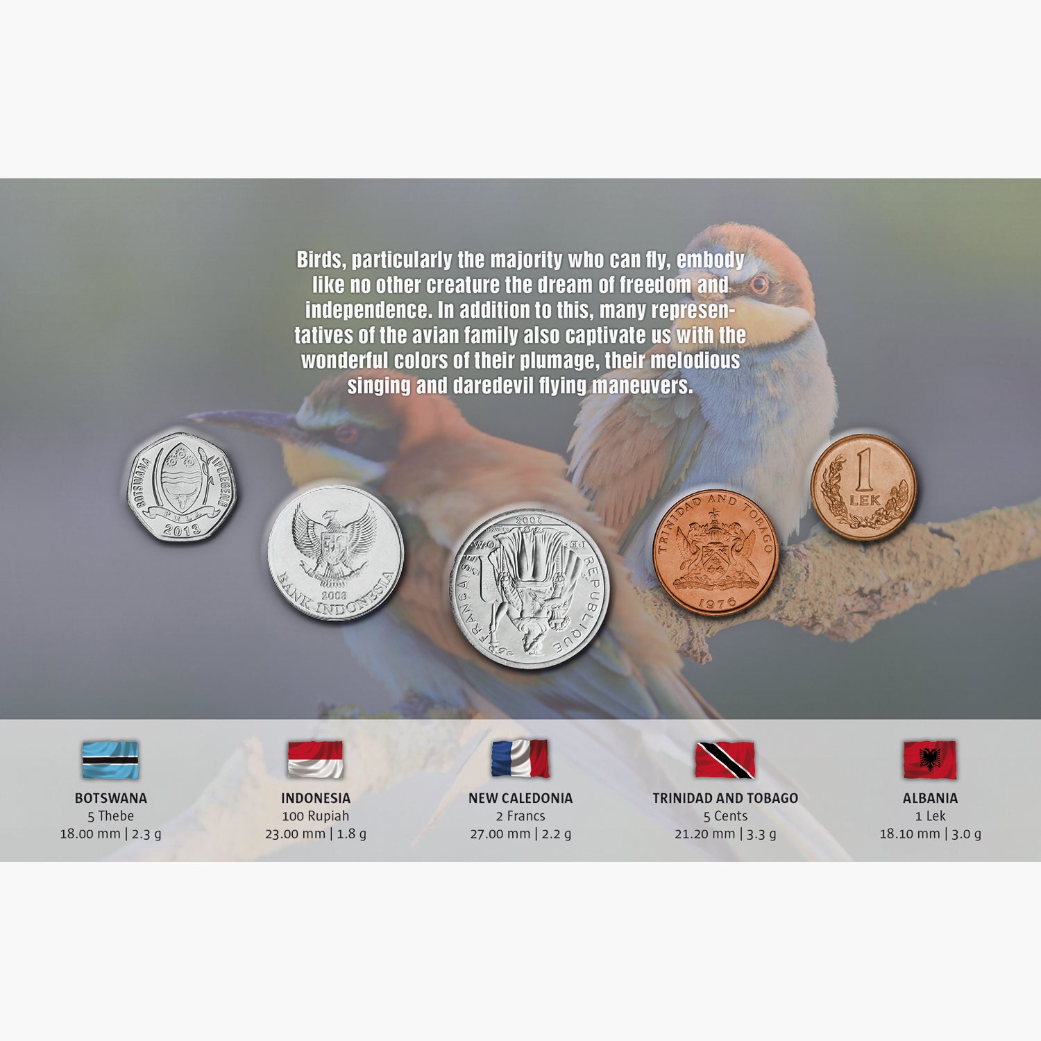 This coin collection unites marvellous representations of birds from throughout the world in harmonious beauty.
